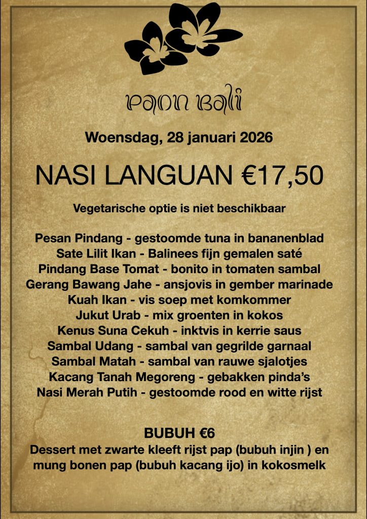 Door het concept OP is OP, maaltijd bestellen is nodig als U later dan 19:00 komt afhalen ( text only/WA +31 658991855 voor 17:00 ).