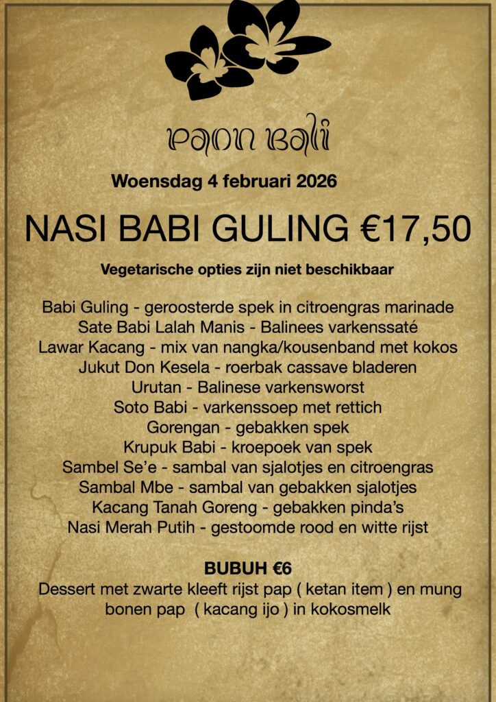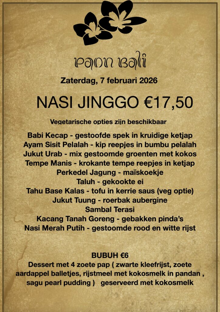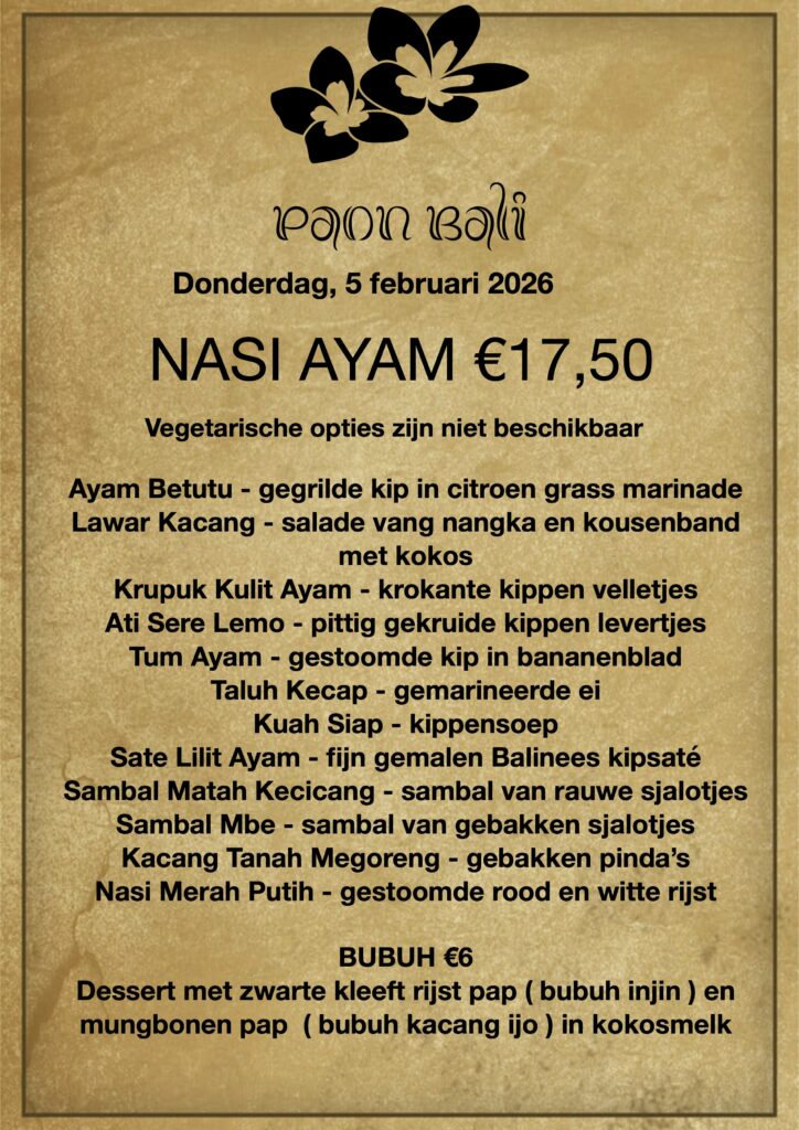 Door het concept OP is OP, maaltijd bestellen is nodig als U later dan 19:00 komt afhalen ( text only/WA +31 658991855 voor 17:00 ).