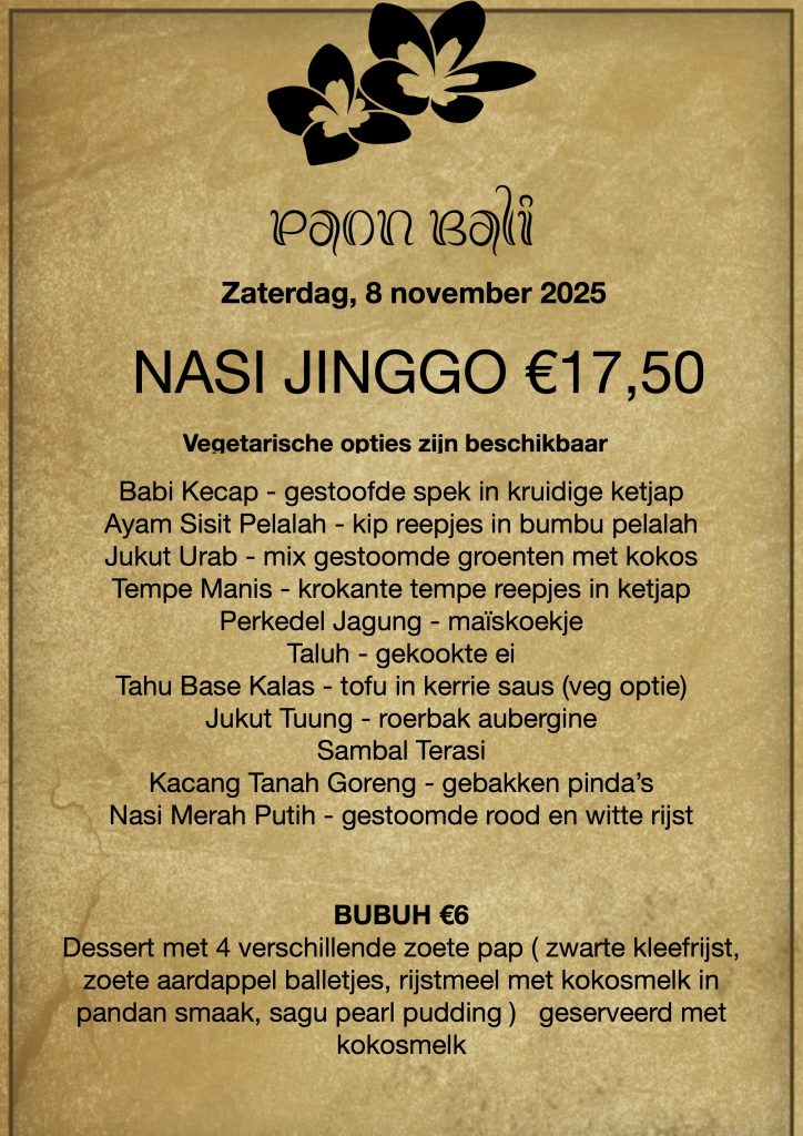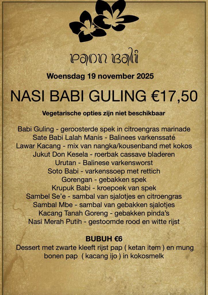 Door het concept OP is OP, maaltijd bestellen is nodig als U later dan 19:00 komt afhalen ( text only/WA +31 658991855 voor 17:00 ).